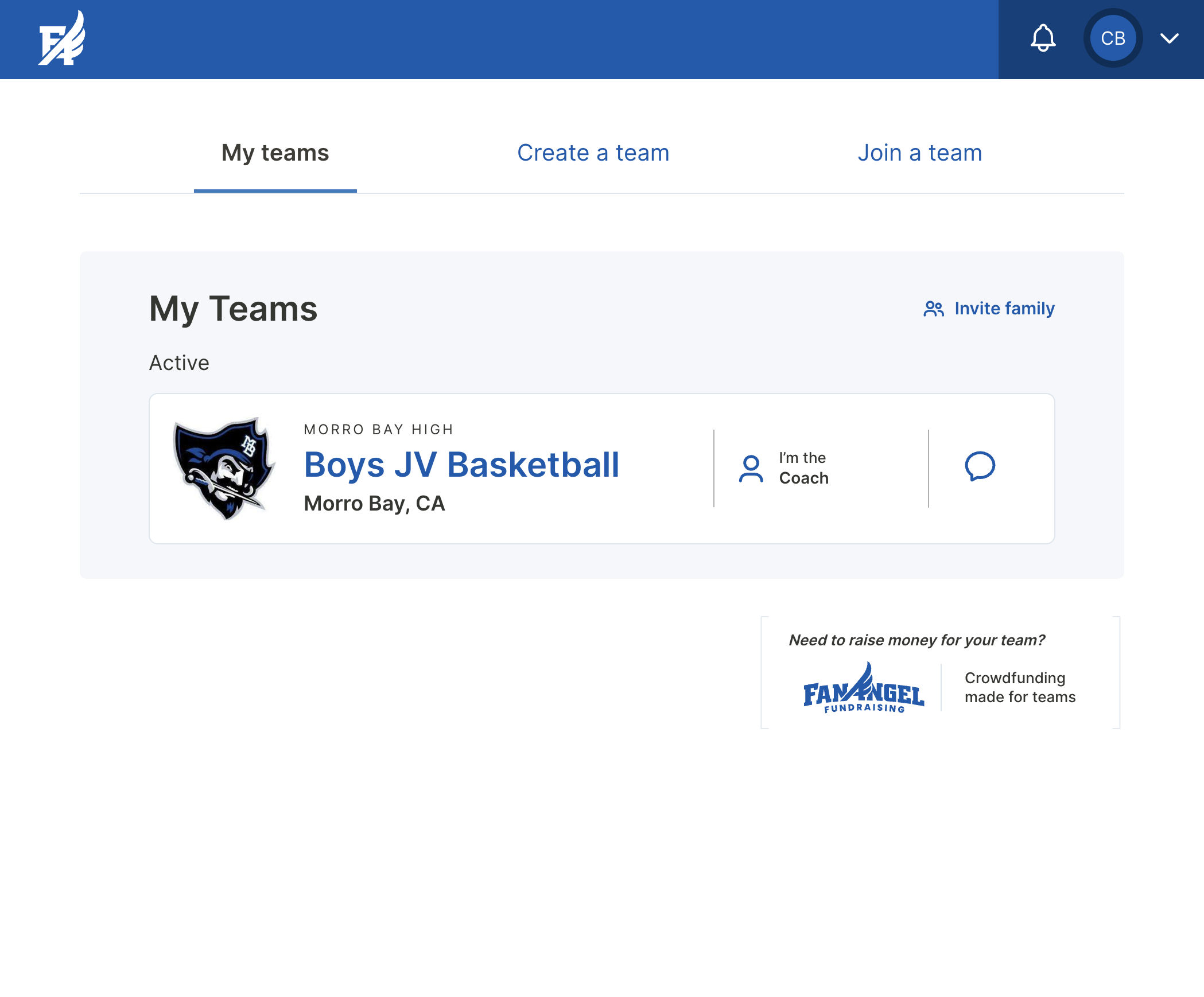 On the "My Teams" dashboard, you will see the team you were invited to (e.g., "Morro Bay High Boys JV Basketball").